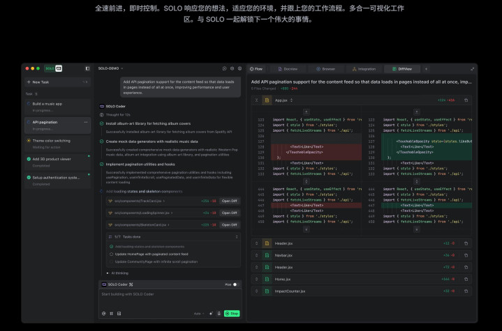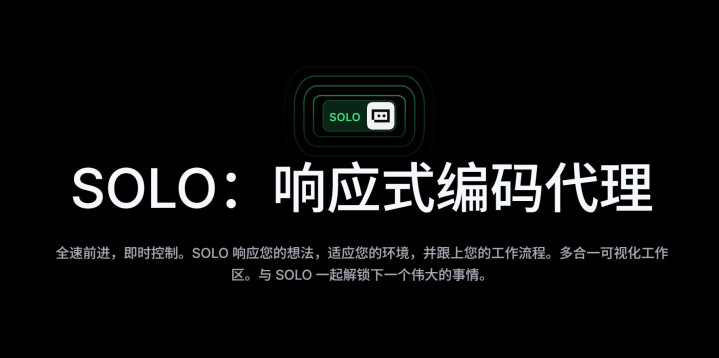这个词听着唬人,但解释起来却很直白:过去的AI是代码的辅助,只能理解你光标所在的那几行;而SOLO模式下的AI,是一个集编辑器、终端、浏览器等多工具视图于一体,能自主执行开发任务的超级个体。