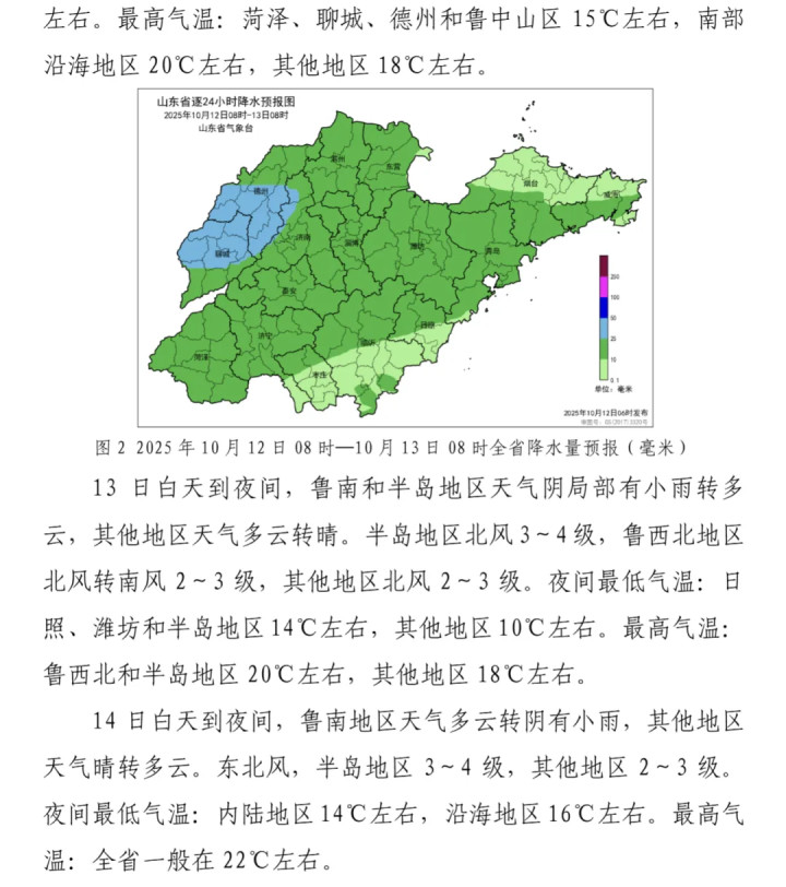 10月12日8时免费配资开户,山东省气象台发布最新天气预报,预计,12日,鲁西北和鲁中地区有中雨局部大雨,其他地区有小到中雨;13—14日,鲁南部分地区有小雨,其他地区多云间晴。具体情况如下: