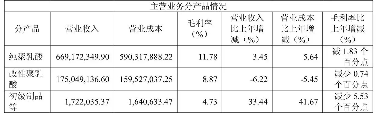从收入结构来看,公司三大主营业务正经历盈利空间收窄的寒冬。纯聚乳酸以6.69亿元营收占据绝对主导地位,同比微增3.45%,但毛利率下滑1.83个百分点。
